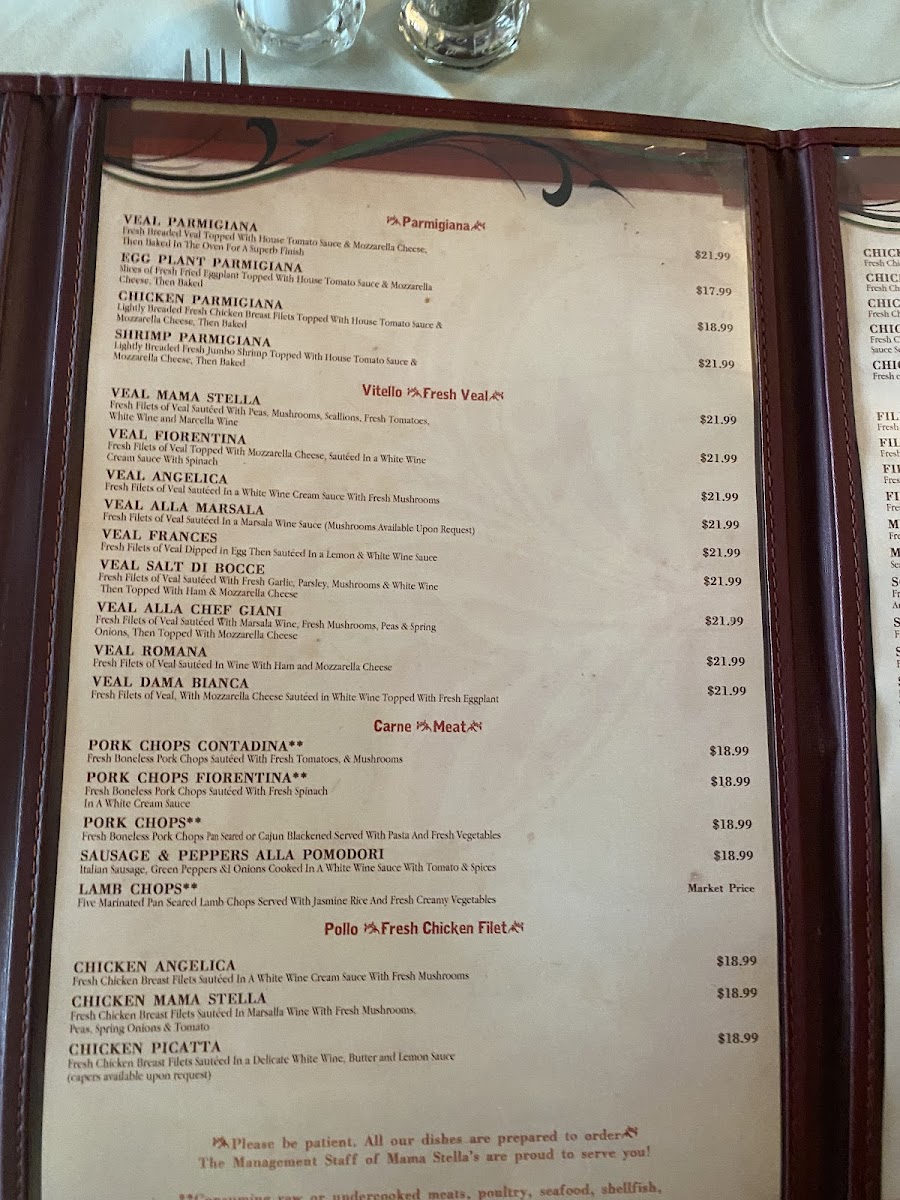 Fresh chicken breast filets sautéed in a delicate white wine, butter, and lemon sauce. Capers Available upon Request