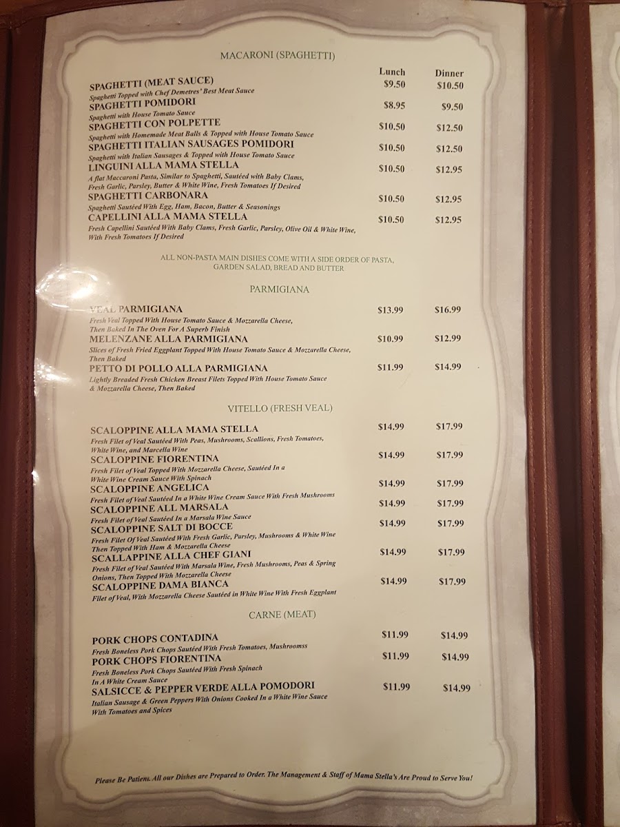 A flat macaroni pasta, similar to spaghetti, sautéed with baby clams, fresh garlic, parsley, butter and white wine, fresh tomatoes if desired. Plese Specify Red or White Sauce when Ordering